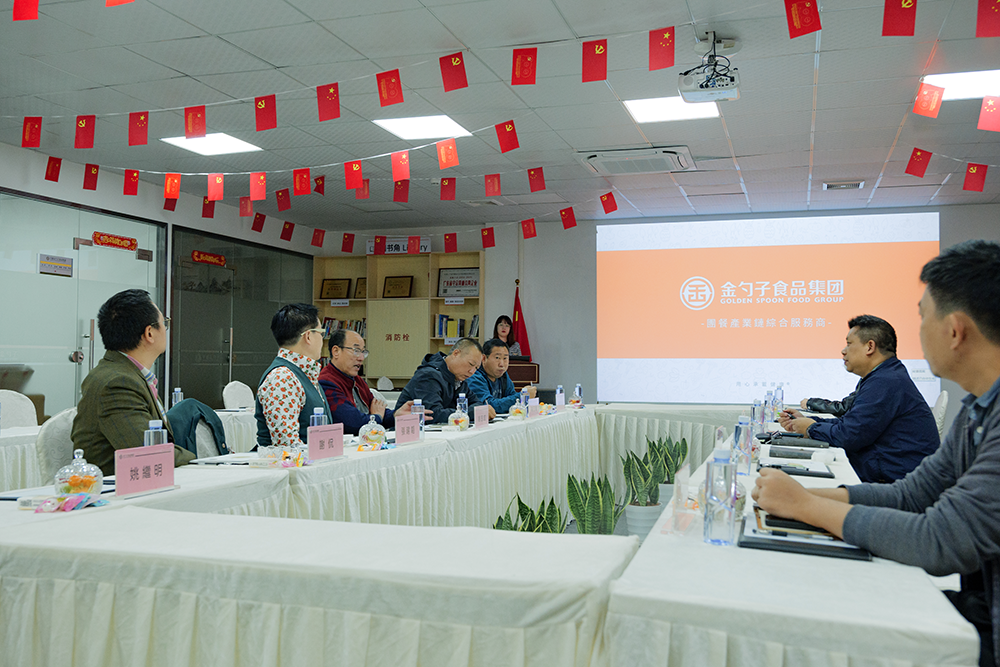 座談中,我司集團副總裁黃文才向考察交流團介紹了團餐產業鏈發展、農產品流通配送運行模式等,并表示綠色團餐和智慧農業已成為未來行業的發展趨勢,希望將兩者有機結合打造雙贏局面,盡企業的努力更快更好地助力鄉村振興,引領行業發展。