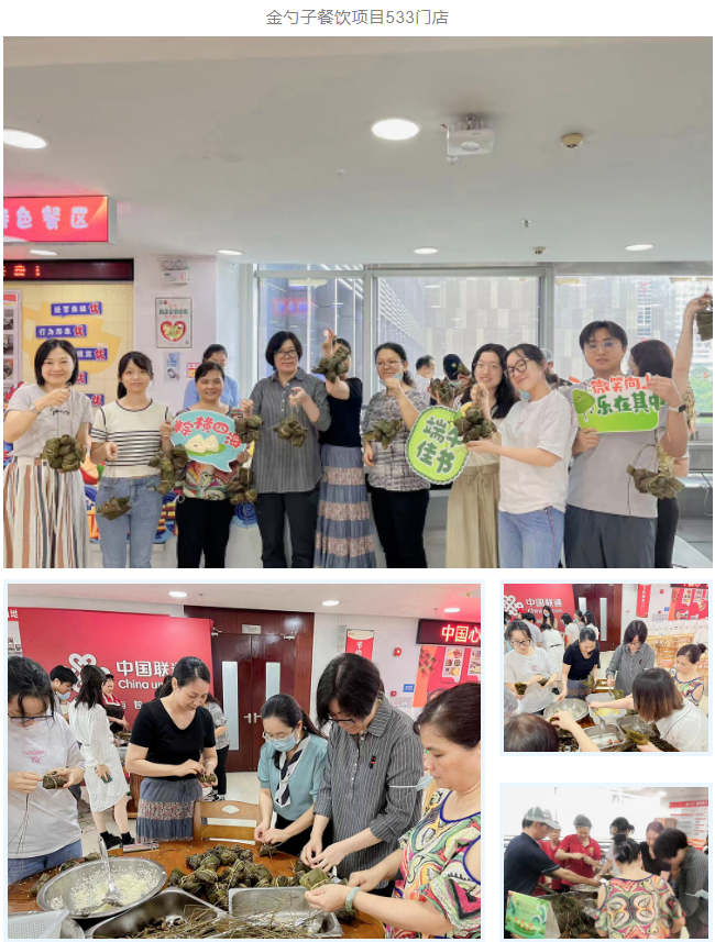 在端午節來臨之際,金勺子食品集團多個餐飲項目門店同步開展端午節主題活動,誠邀門店職工積極參與,共同體驗指尖上的端午,深刻感受傳統文化的魅力。
