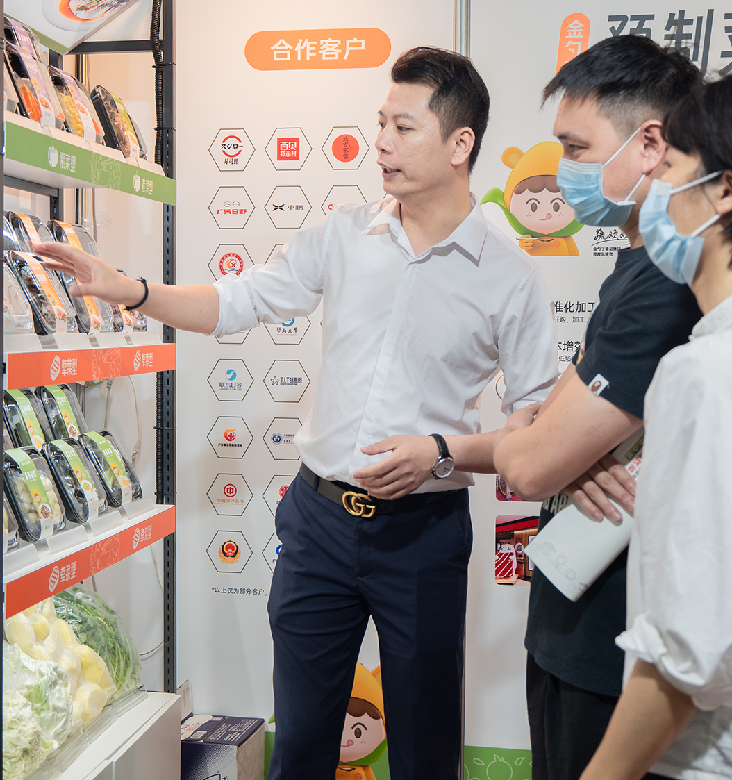 廣東中膳金勺子食品集團有限公司以粵字號農業品牌“金勺子預制菜”亮相展會,推出包裝鮮切菜、生鮮半成品、快手菜、火鍋菜等系列營養便捷、美味健康的新品,吸引無數人前來參觀交流。