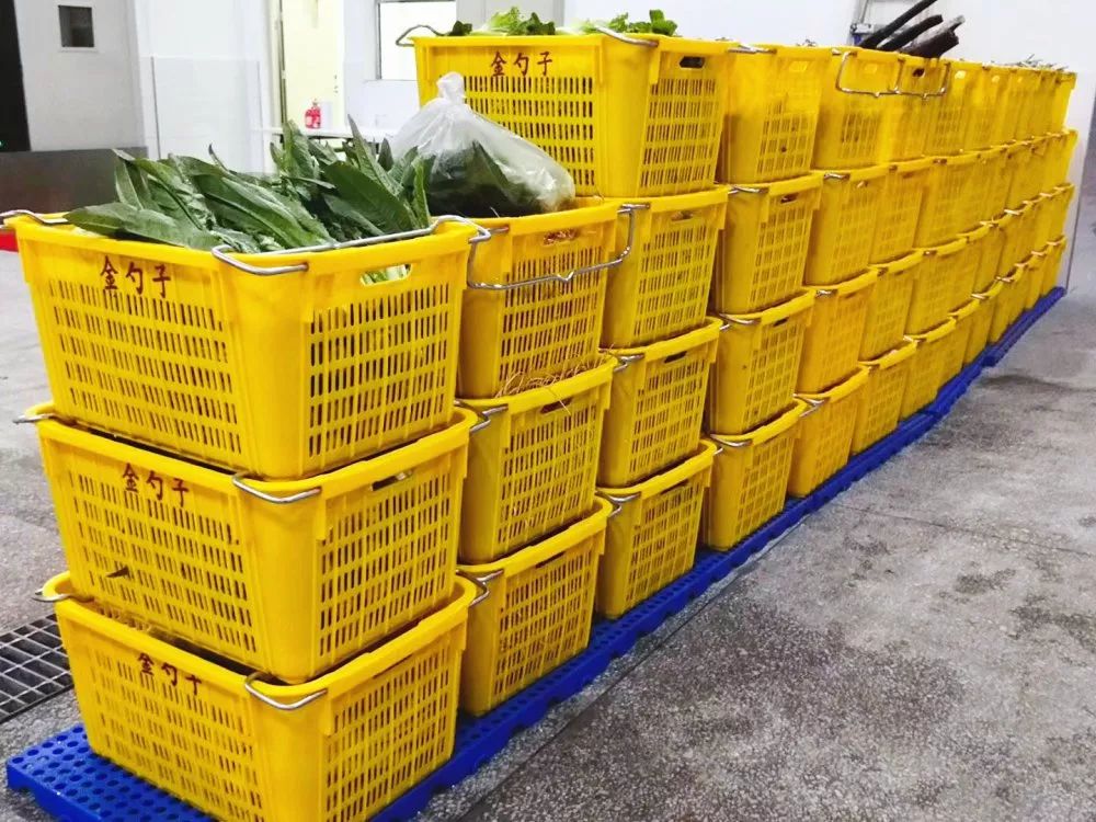 經由檢驗合格的蔬菜會被送往中膳金勺子配送中心,由分揀員負責進行下貨、歸位、分揀、清洗、裝框的工作。中膳金勺子制定嚴格的分揀標準,不合格的蔬菜會第一時間放入淘汰區,堅決淘汰品相不佳的蔬菜,而對于葉類蔬菜,則會將爛掉、碎掉、黃掉的葉子剝去,切除帶泥的部分。最后,分揀清洗完成的蔬菜會進行稱重,裝入安全無毒的蔬菜框,等待裝車配送。