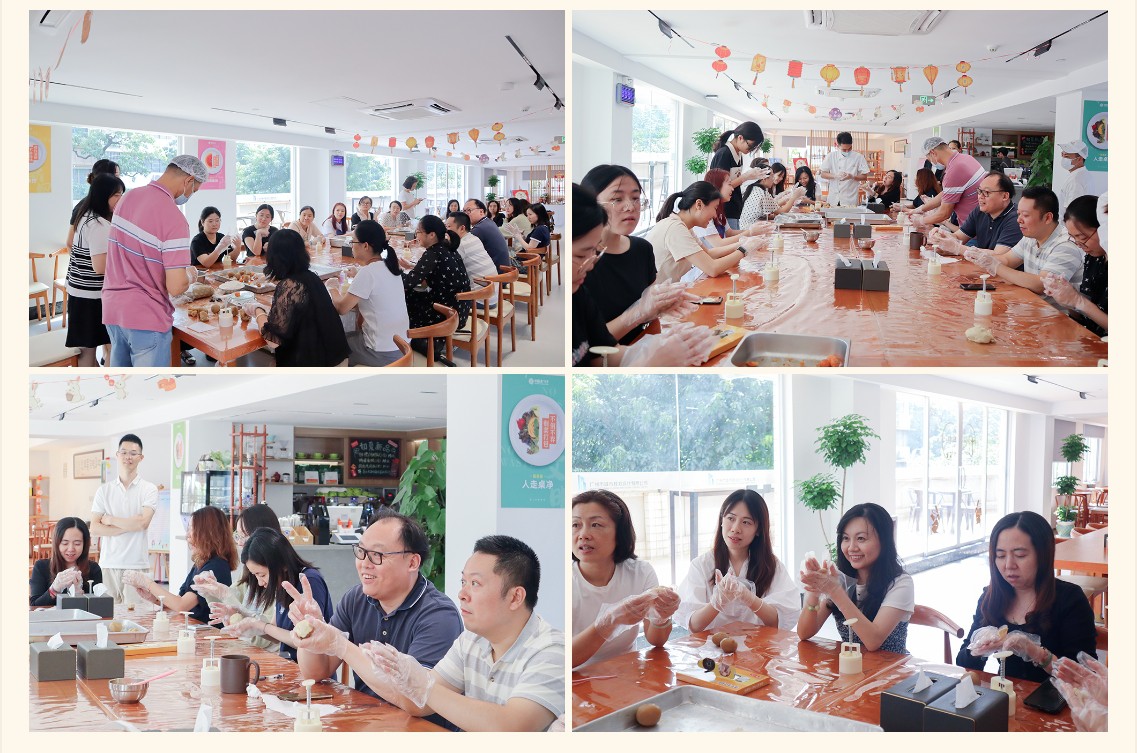 9月26日,金勺子團餐項目439門店(廣州某設計所職工食堂)開展富有中國傳統特色的手工月餅制作活動。工作人員提前裝扮活動區域、備好食材,邀請職工們一起動手制作月餅。在食堂工作人員的指導下,職工們紛紛挽起袖子大顯身手,熟練地包餡、壓模,制作出一個個精美的月餅。