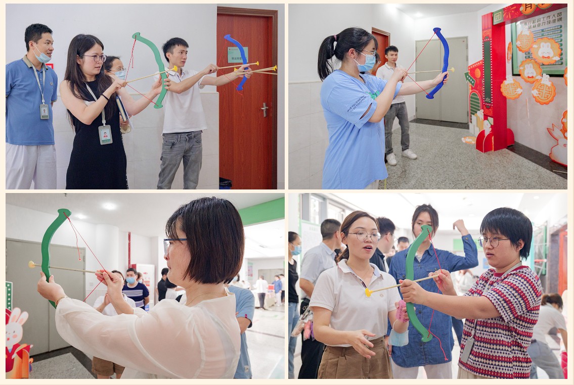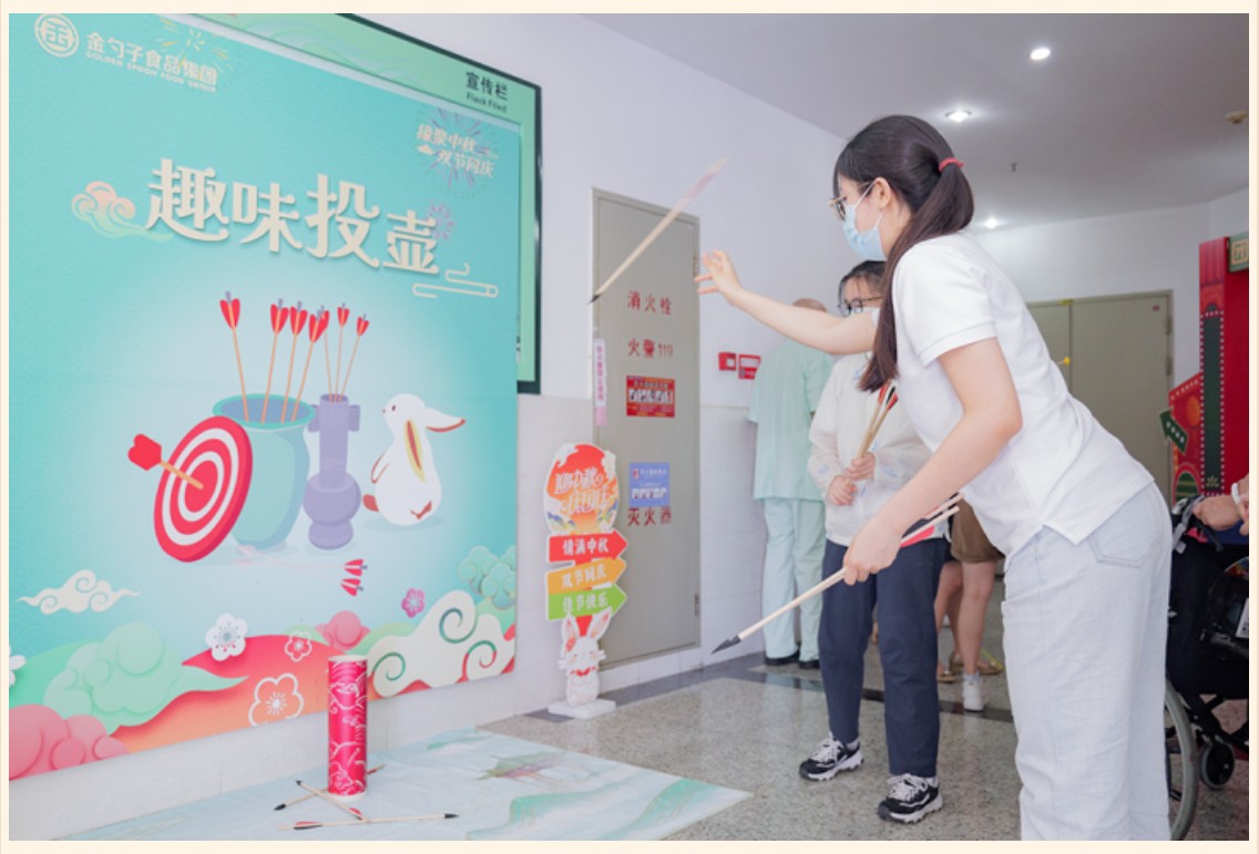 9月27日,金勺子團餐項目366門店(廣州某醫院職工食堂)組織開展一場別開生面的中秋活動,現場熱鬧非凡,節日氛圍感拉滿。在活動現場,職工們在現場排隊參與《射懸月》和《趣味投壺》活動,一起感受中秋傳統文化的魅力,一起體驗古代射手的樂趣。
