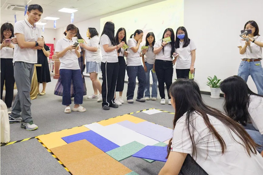 《真人版拼圖》游戲考驗(yàn)了員工們的團(tuán)隊(duì)協(xié)作能力,他們緊密合作,相互配合,充分展現(xiàn)了團(tuán)隊(duì)精神。