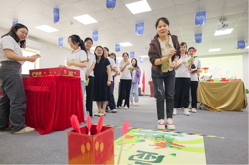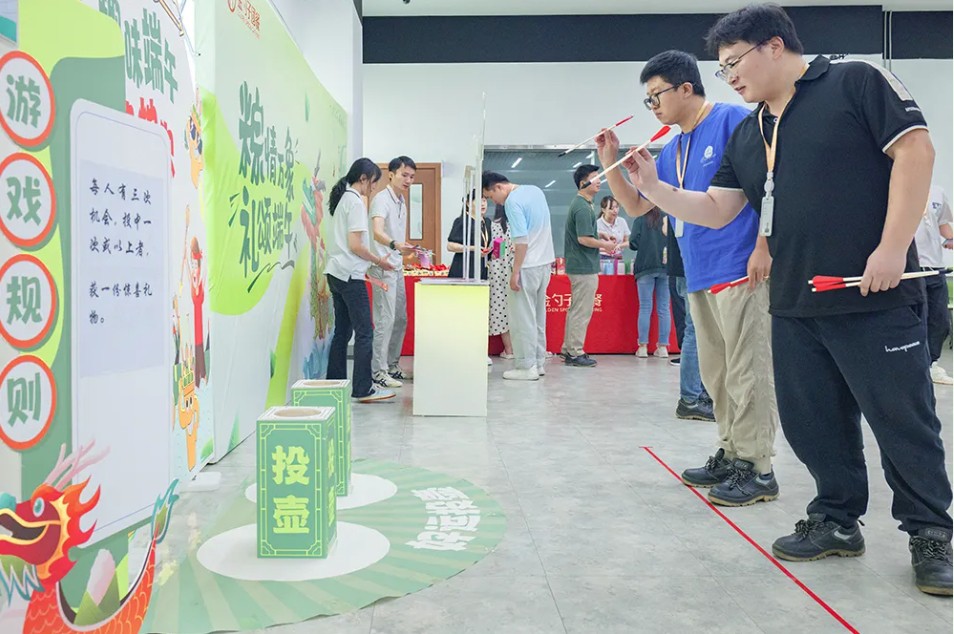 現(xiàn)場活動(dòng)的投壺、有獎(jiǎng)問答游戲不僅是一種知識考驗(yàn),也是一種精神文化,體現(xiàn)了中國古代文化的智慧和韻味。當(dāng)天中午,現(xiàn)場熱鬧不已,職工踴躍參與其中,以傳統(tǒng)文化游戲的方式來放松身心、獲取幸福感。