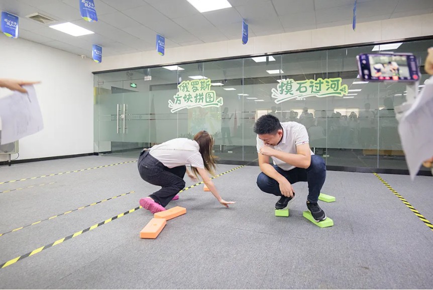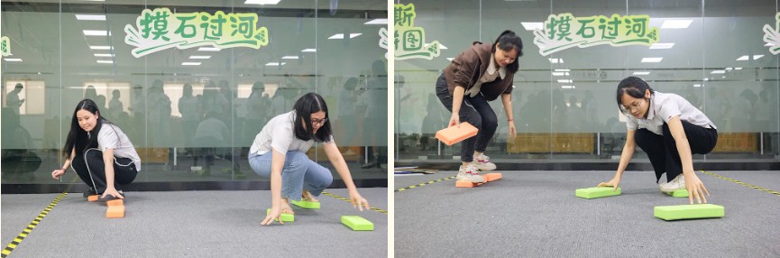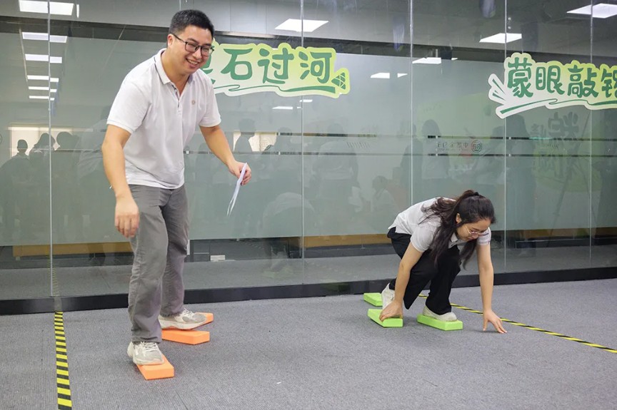 《摸石頭過河》游戲則是一場趣味橫生的競賽。員工們共同跨越障礙,到達(dá)終點(diǎn),感受到了團(tuán)隊(duì)協(xié)作的重要性。